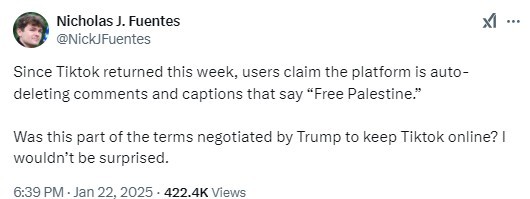 Critics slammed the app, with some suggesting that TikTok's reinstatement in the US might have come with conditions, including censoring pro-Palestinian content or any material opposing America's political interests.